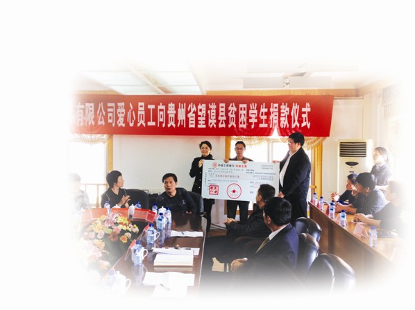 為進(jìn)一步援助望謨縣教育事業(yè)的發(fā)展,從今年下半年開始,公司啟動了定向援助品學(xué)兼優(yōu)貧困生的愛心助學(xué)活動。6月27日,公司黨委和工會組織召開會議,征求意見,商定具體援助方案。截止8月底,公司國內(nèi)外員工捐款18.8萬元。10月31日,公司工會領(lǐng)導(dǎo)將這筆凝結(jié)著每一位員工希望和愛心的善款送到望謨縣。