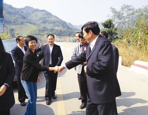 10月31日上午,開往望謨縣的汽車在盤山公路上奔馳著,同去的貴州省領(lǐng)導(dǎo)介紹說,貴州很多在建高速路用的都是天津水泥院有限公司承建的水泥廠生產(chǎn)的優(yōu)質(zhì)水泥。聽了這話,陳增福感慨地說:“能為貴州的經(jīng)濟(jì)建設(shè)做貢獻(xiàn),這是公司所有員工的驕傲。”圖為望謨縣領(lǐng)導(dǎo)迎接陳增福(右)一行。