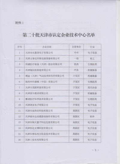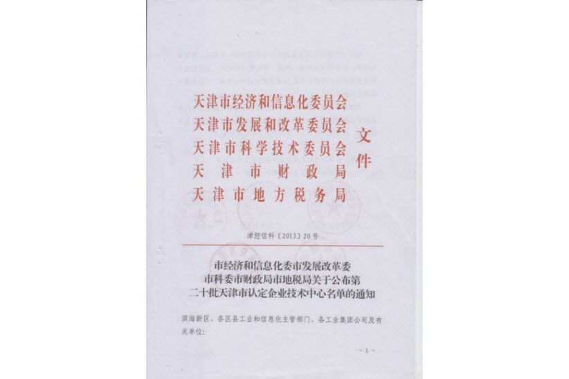 日前,由天津市經(jīng)濟(jì)和信息化委員會、市發(fā)展和改革委員會、市科學(xué)技術(shù)委員會、市財(cái)政局和市稅務(wù)局聯(lián)合下文,中材國際天津公司被認(rèn)定為天津市市級企業(yè)技術(shù)中心。