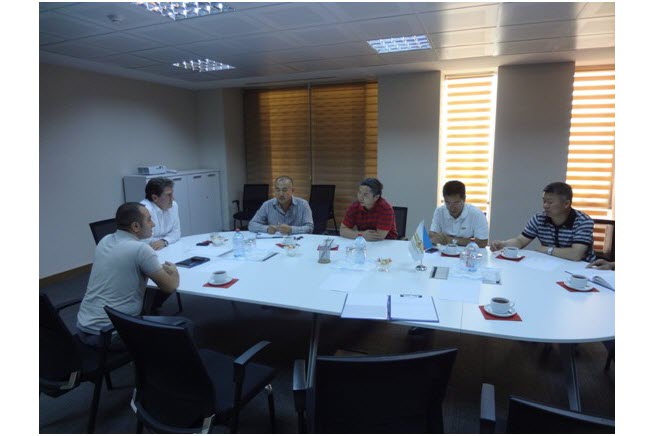 8月15日晚,中材國際副總裁賀嵐曦、安全部部長孫成林和中材國際天津公司副總經理劉劍英一行蒞臨中材國際天津公司承建的阿塞拜疆QAZAX項目部視察指導工作。