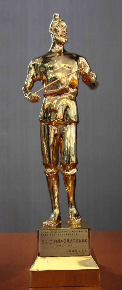 2013年12月5日,中國建設工程魯班獎表彰大會在北京舉行,中材國際EPC總包建設的“沙特利雅得水泥公司(RCC)二期5000t/d熟料水泥生產線工程”榮獲2012~2013年度中國建設工程魯班獎(境外工程)。此次共有229項國內外工程獲得魯班獎,其中境外工程僅27項。