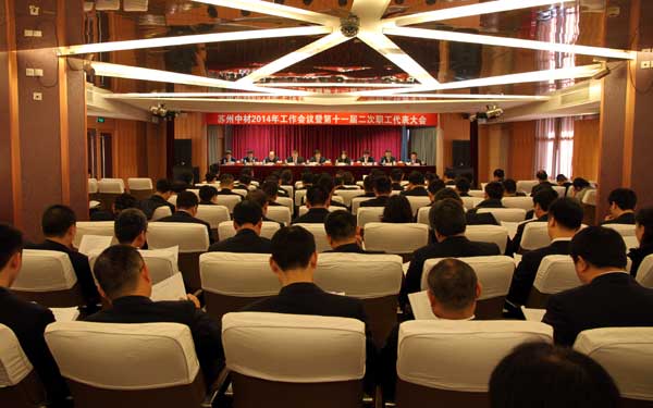 蘇州中材2014年年度工作會(huì)議暨第十一屆二次職代會(huì)于元月27至28日在昆山中材大廈召開,蘇州中材領(lǐng)導(dǎo)班子成員、項(xiàng)目經(jīng)理、總部中層管理人員和職工代表參加了會(huì)議。