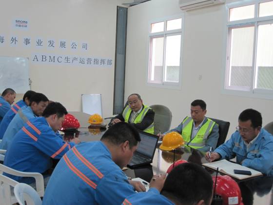 在聽取相關介紹后,賀參贊對ABMC項目現(xiàn)場部在項目停工三年之后攻克各種難關,通過性能考核,注重細節(jié)管理,嚴把安全關和質量關,穩(wěn)步推進項目各項工作予以高度贊揚和肯定。對SINOMA在中東地區(qū)的品牌形象給予高度認可。同時希望SINOMA這樣優(yōu)秀的央企帶出更多優(yōu)秀的團隊,同時優(yōu)秀的團隊也能進一步提升SINOMA的國際形象。在知悉面臨市場和設備等相關困難時,賀參贊表示,使館經參處會盡全力支持中材國際海外事業(yè)發(fā)展公司及ABMC項目。他強調現(xiàn)場部在注重生產安全的同時,一定要注重生活安全、交通安全以及食品安全。
