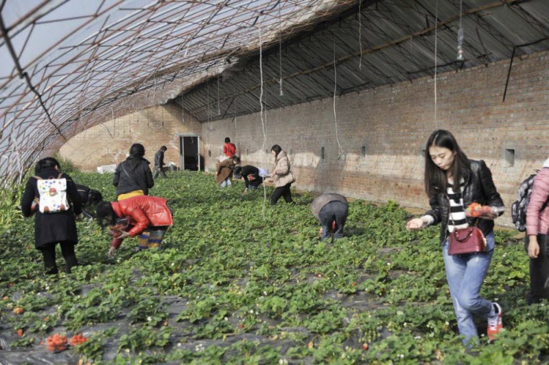 三月的天氣乍暖還寒,風(fēng)和日麗的天氣讓參加活動(dòng)的女同胞們興高采烈,歡聲笑語伴隨著整個(gè)行程。當(dāng)大家來到種植草莓的大棚,陣陣清香撲面而來,一眼望去,只見綠綠的一片,下面零星散落著紅艷艷的草莓,煞是好看。初看很少,但彎腰仔細(xì)一瞧,很多都調(diào)皮的藏在葉子下面,像小紅燈籠一樣,鮮嫩欲滴,好像在說“快來,快來,我們成熟了,非常好吃呢!”,大家都被這累累的草莓果實(shí)“誘惑”了,爭(zhēng)先恐后的投入到采摘之中。