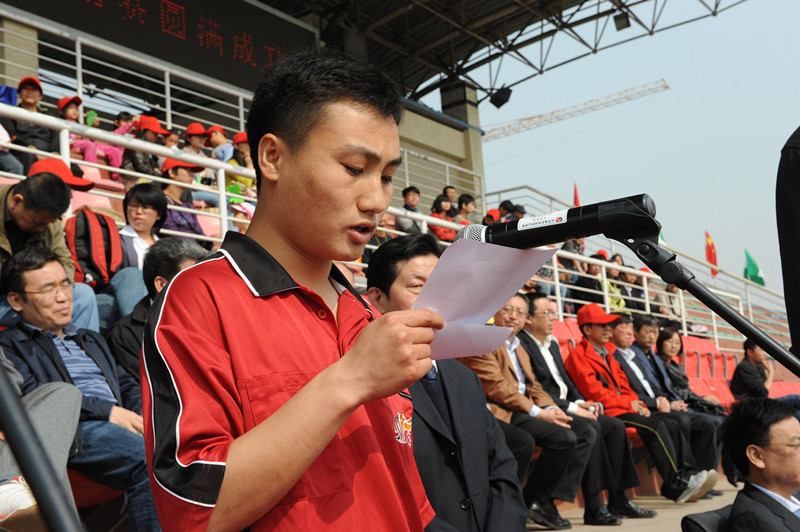 中材裝備公司的耿爽代表參加本次足球賽的全體運動員莊嚴(yán)宣誓:將以積極、飽滿、熱情的態(tài)度參加本次比賽。在比賽中,服從領(lǐng)導(dǎo),服從指揮;遵守紀(jì)律,遵守規(guī)則;尊重裁判,尊重對手;團結(jié)協(xié)作,勇于拼搏;友誼第一,比賽第二;賽出風(fēng)格,賽出水平。