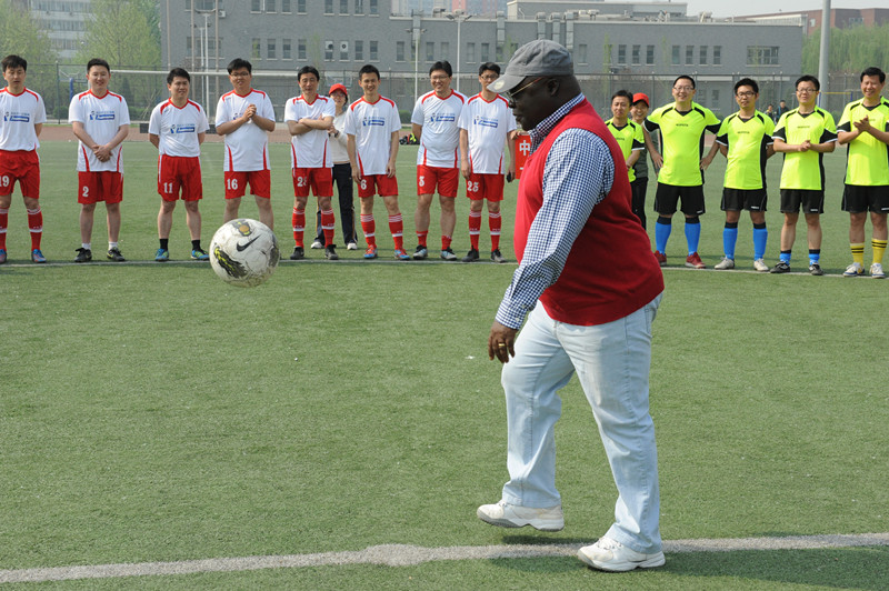 在全場觀眾的注目下,尼日利亞大使Patrick Olusola Onadipe先生走向足球場中央,愉快地為此次足球友誼邀請賽開球。隨著一聲哨響,首場參賽的4個隊正式開始了比賽。中材“尼日利亞杯”足球友誼邀請賽開幕式圓滿結(jié)束。
