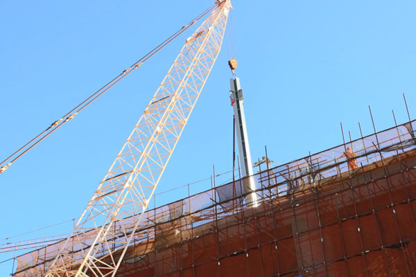 坦桑尼亞當(dāng)?shù)貢r(shí)間6月18日上午8點(diǎn)18分,由中材國(guó)際總承包的坦桑尼亞6000t/d熟料水泥生產(chǎn)線窯尾框架第一根立柱開始吊裝作業(yè)。