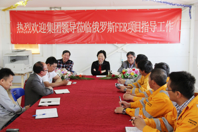 在聽取相關(guān)情況匯報(bào)后,張江發(fā)表了重要講話。張江首先對(duì)俄羅斯FER項(xiàng)目于2014年6月20日獲得拉法基業(yè)主頒發(fā)的Taking Over 證書的成績給予贊揚(yáng)和肯定,稱贊俄羅斯FER項(xiàng)目為公司在俄羅斯市場樹立標(biāo)桿發(fā)揮了關(guān)鍵作用,肯定俄羅斯項(xiàng)目團(tuán)隊(duì)是一個(gè)作風(fēng)優(yōu)良、管理到位、極有戰(zhàn)斗力的集體。張江還表揚(yáng)俄羅斯FER項(xiàng)目堅(jiān)持精神文明建設(shè)和施工進(jìn)展兩不誤,在裝備技術(shù)等達(dá)到國際先進(jìn)水平并得到國際市場認(rèn)可的同時(shí),將公司積極拼搏,堅(jiān)韌團(tuán)結(jié)的文化予以傳承發(fā)揚(yáng),使得各項(xiàng)監(jiān)督管理到位,項(xiàng)目合同按具體要求落到實(shí)處。最后,張書記對(duì)全體項(xiàng)目員工提出期望,她鼓勵(lì)大家堅(jiān)定不移地執(zhí)行集團(tuán)“走出去”戰(zhàn)略,在一線取得成績的基礎(chǔ)上,做好二線工作,為俄羅斯市場新簽項(xiàng)目打好基礎(chǔ),努力將公司打造成一個(gè)基業(yè)長青的企業(yè),為集團(tuán)、為國家增光添彩。