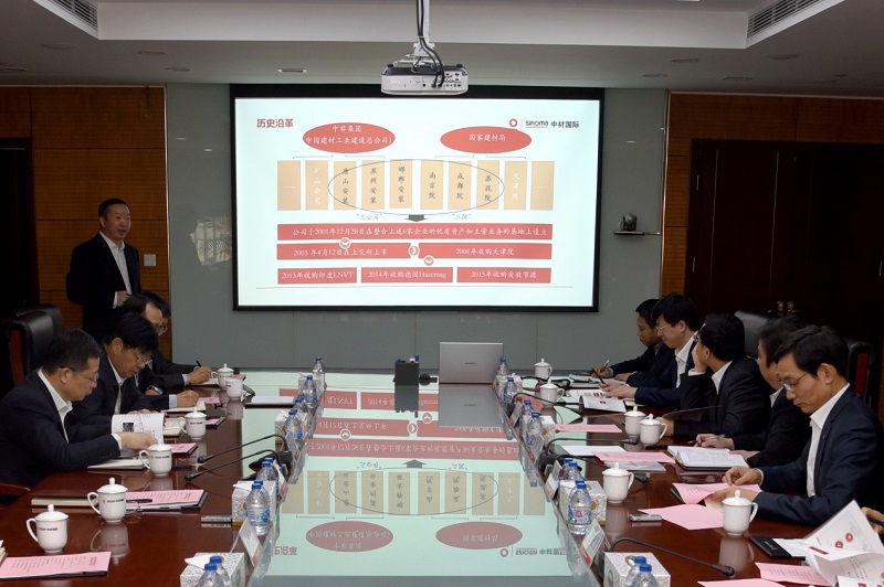 集團(tuán)董事會辦公室主任干志平,科技管理部總經(jīng)理郅曉,國際合作部總經(jīng)理李志威,黨群部主任苗小玲,辦公室副主任張靜,董事會辦公室經(jīng)理邱艾平陪同考察調(diào)研。中材國際全體高管成員、總部相關(guān)部門負(fù)責(zé)人參加接待匯報。