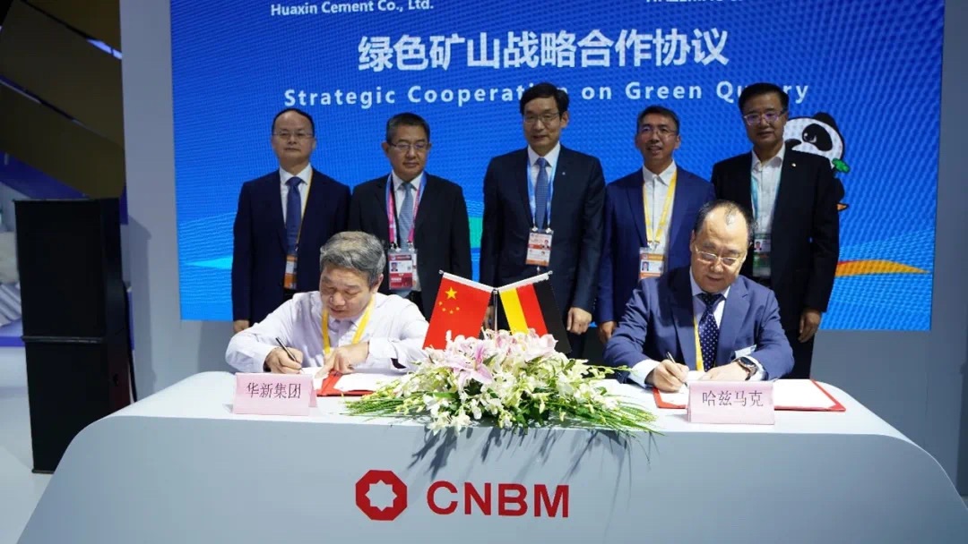 進(jìn)博會(huì)首日,中國建材集團(tuán)組織了“綠色低碳集中簽約”活動(dòng),公司所屬哈茲馬克、南京凱盛分別與華新水泥、施耐德簽署戰(zhàn)略合作協(xié)議,商務(wù)部歐洲司司長(zhǎng)翟謙、中國建材集團(tuán)黨委書記、董事長(zhǎng)周育先、中國建材股份副總裁余明清見證了合作簽署。