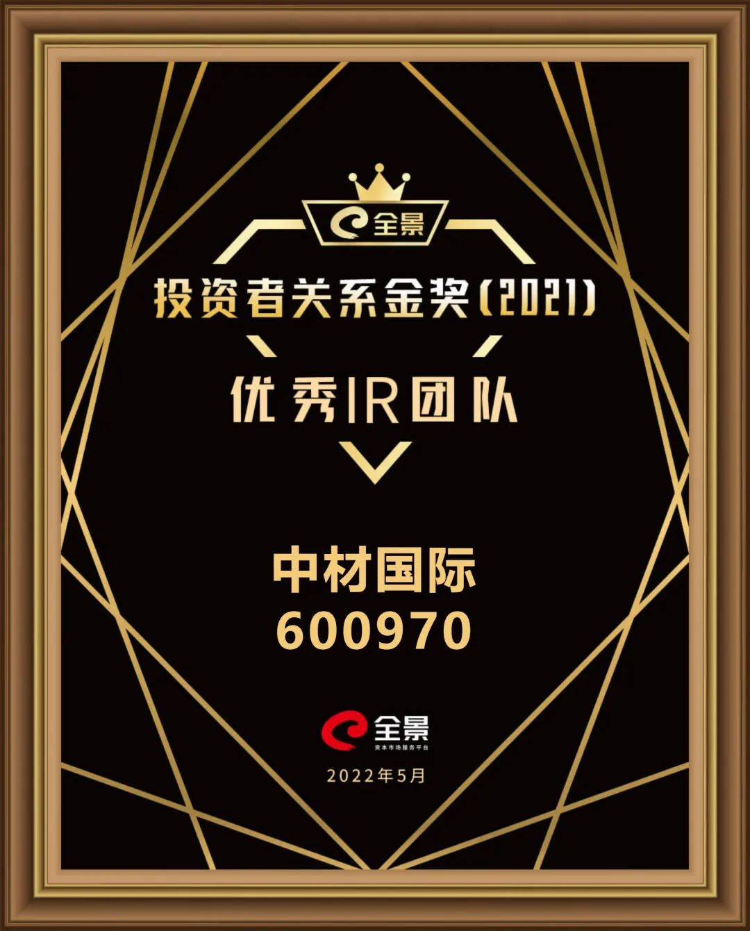 由全景網(wǎng)主辦、南開(kāi)大學(xué)中國(guó)公司治理研究院參與推出的“全景投資者關(guān)系金獎(jiǎng)”2021年度獲獎(jiǎng)榜單正式揭曉!中材國(guó)際憑借在投資者關(guān)系工作中的優(yōu)秀表現(xiàn),榮獲“全景投資者關(guān)系金獎(jiǎng)”優(yōu)秀IR團(tuán)隊(duì)獎(jiǎng)。