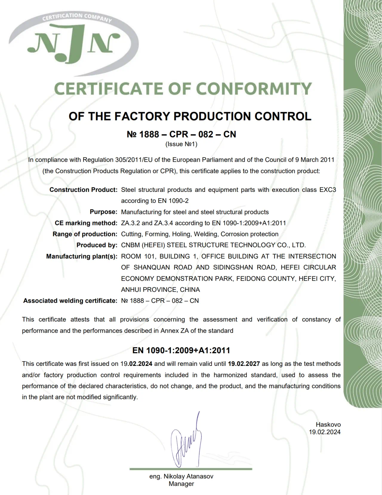 裝備集團(tuán)所屬中建材鋼構(gòu)公司榮獲歐洲權(quán)威的CE認(rèn)證、“肥東縣2023年度建筑房地產(chǎn)業(yè)10強(qiáng)”稱(chēng)號(hào)。